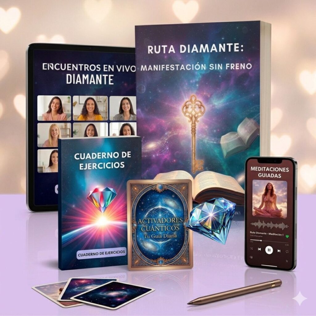 Mi Ruta Diamante: Manifestación sin freno es ese sistema. Son los 9 Capítulos y las 7 Acciones Claves que te dan el anclaje que faltaba para dejar de ‘esperar a que suceda’ y empezar a operar desde la Certeza absoluta de que el deseo ya está cumplido.»